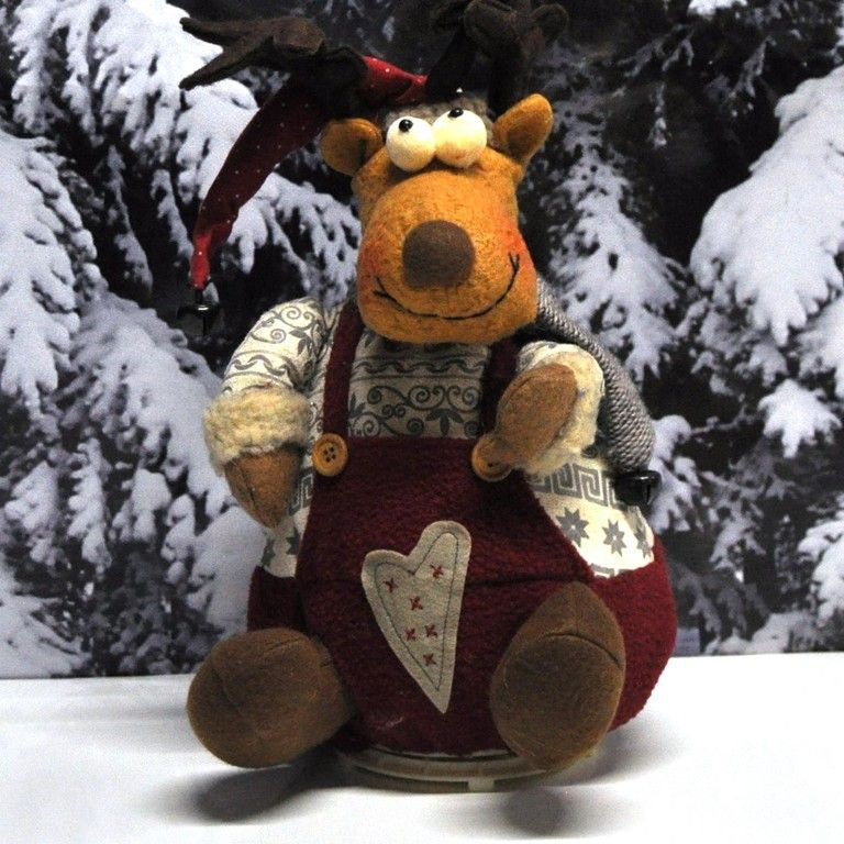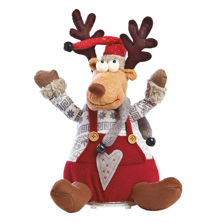 A super deluxe Christmas reindeer to 37 cm. high. Press the hand Reindeer and he begins to sing a merry Christmas song. During the singing turns reindeer nice back and forth.
