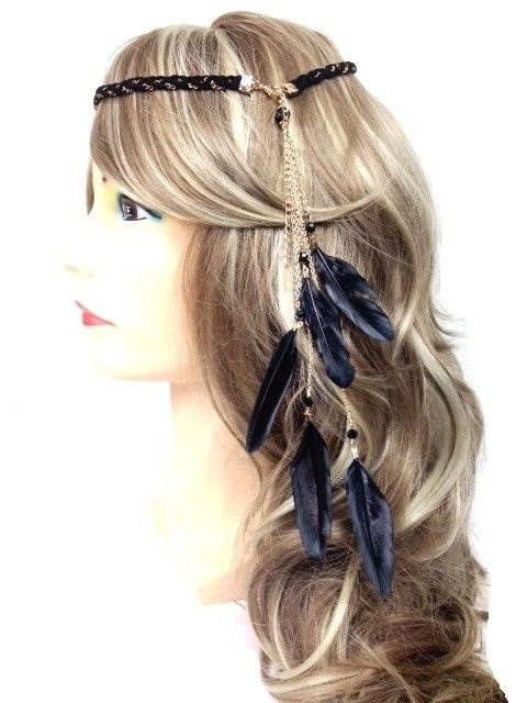 S_600114F - IBIZA LOOK BRAIDED HAIR BAND WITH BLACK FEATHERS (1st)