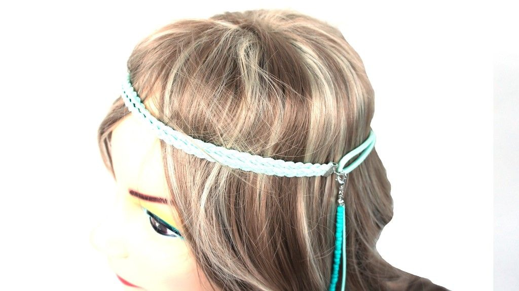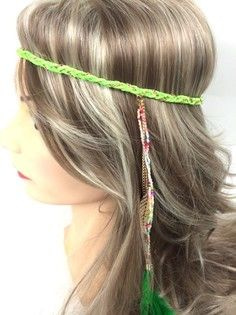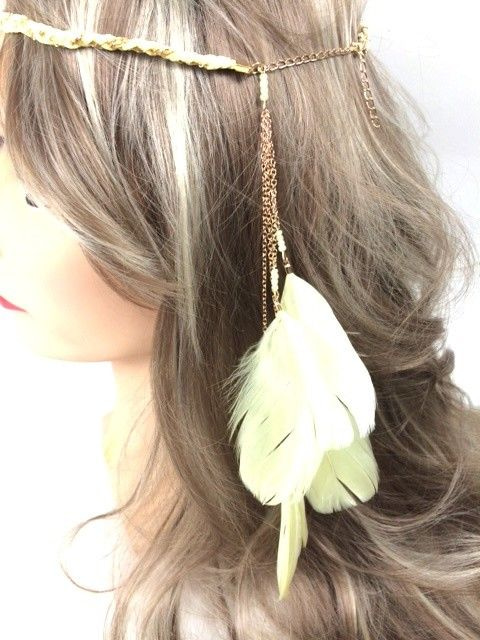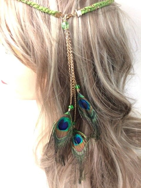 S_600024E - IBIZA LOOK BRAIDED HAIR BAND WITH FEATHERS GREEN (1st)