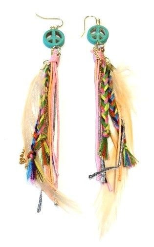S_5727503 - IBIZA LOOK EARRINGS PEACE AND FEATHERS CREAM / TURQUOISE (1st)