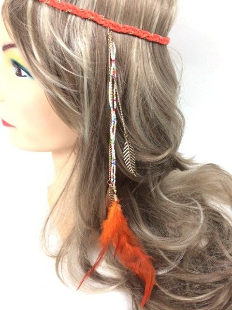 S_600024A - IBIZA LOOK BRAIDED HAIR BAND WITH ORANGE FEATHERS (1st)