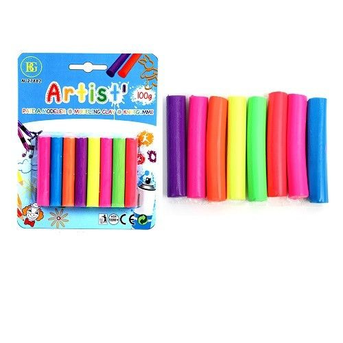 Card with 8 pieces molding clay in beautiful neon colors. This clay card consists of 8 pieces of clay.