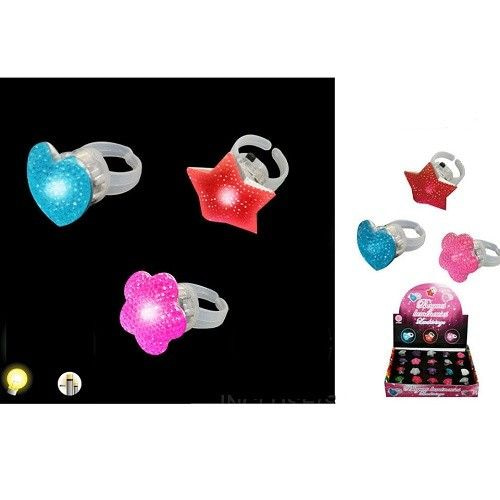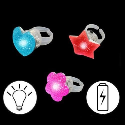 Beautiful Multi color Luminous rings in display. Replace the ring and turn it on. Then the ring is always colored! Comes in a display. Including battery.