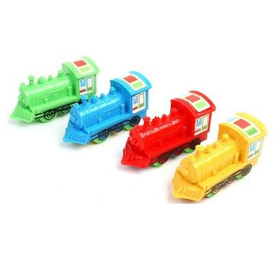 Nice colorful pull back locomotives. Pull the train backwards and release it .. and then the train automatically moves forward. is supplied in mix colors.