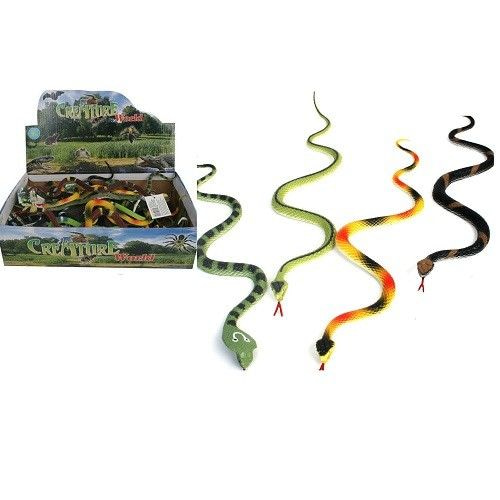 Scary snakes of 34 cm. long packed in a display box. Are supplied in mix types of snakes.