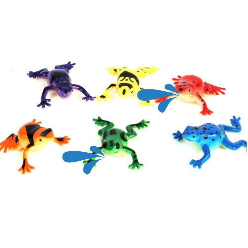 Fill the frog with water .. press the frog .. and then the frog sprays water. Comes in mix colors.