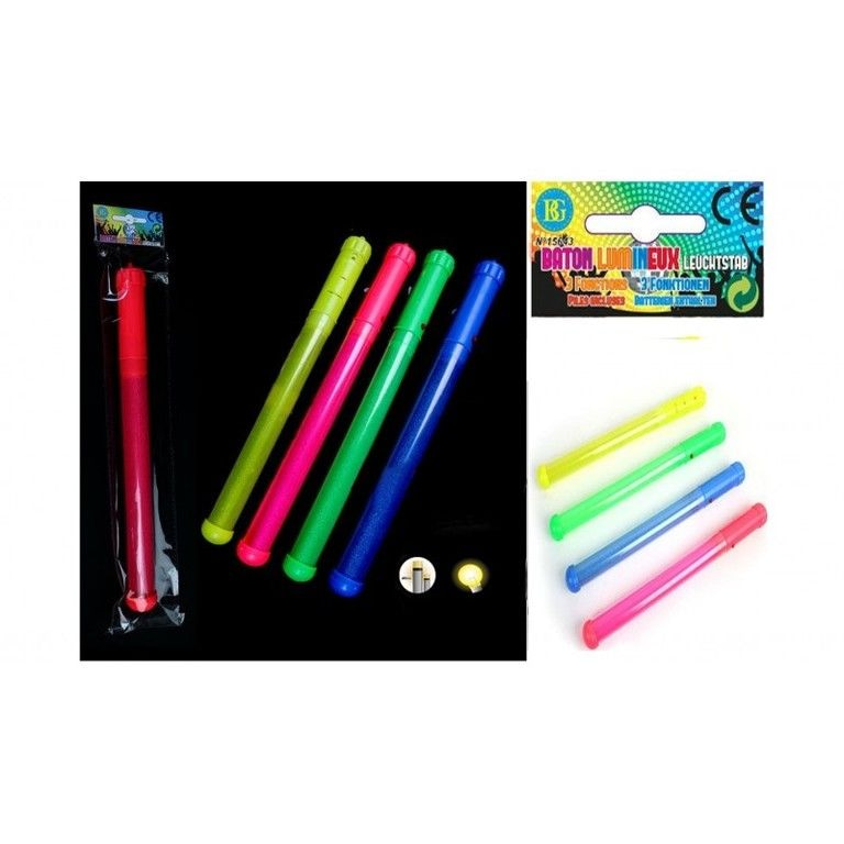 Large Luminous LED bars of 32 Cm. long. equipped with 3 light programs. Ideal to use for a party or party. Batteries included. are delivered in Mix colors.