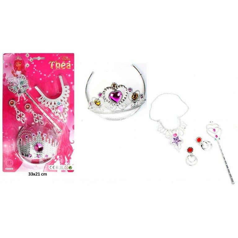 nice big princessen speelset, consisting of: Tiara, earrings, her diadem and magic wand. Packed on a card of: 35 x 21 x 4.5 Cm.