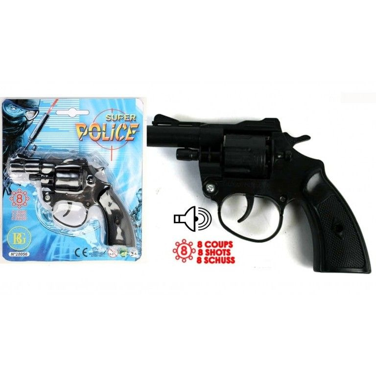 Nice punches police pistols on card, works on 8 shots of banging. Packed on a beautiful card.