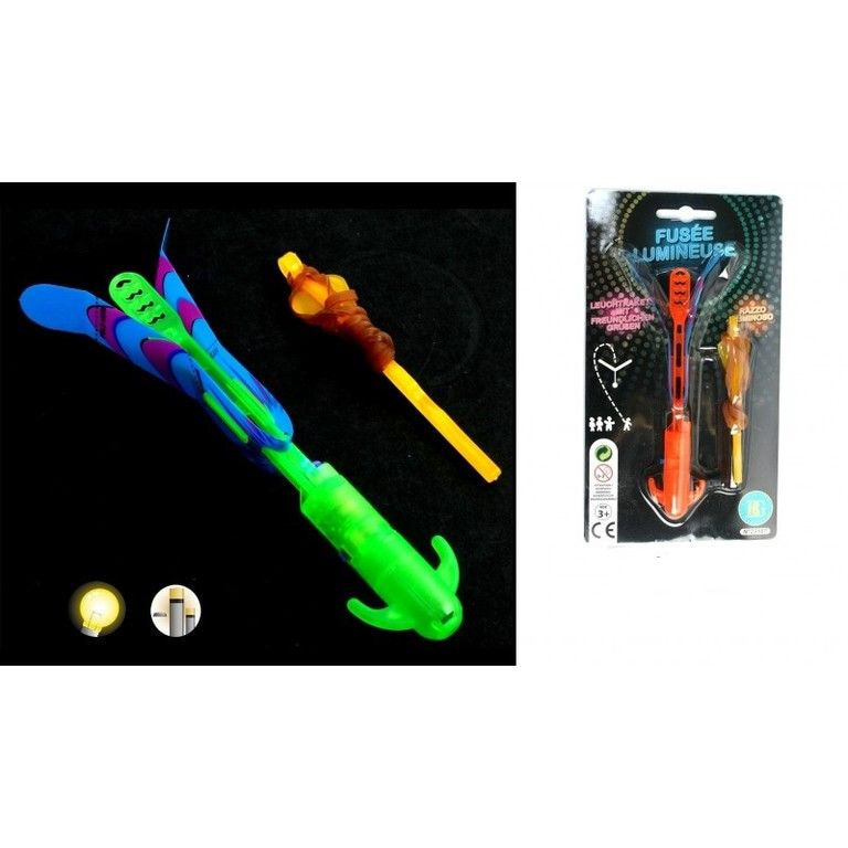 The well-known snoot / catapult helicopters with lights .... A really fun and popular toy item. Shoot the helicopters and let them come down. With the light this creates a beautiful effect in the dark. Packed on a beautiful card of 22 x 12 x 2.5 Cm.