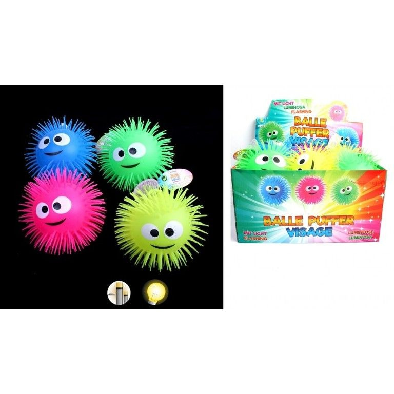 Big Luminous Puffer Bounce balls, put this Puffer bounce ball on your finger and start bouncing with it, then light up this bounce ball with color. Dimensions: 14 x 14 x 14 Cm. Comes in mix colors in a beautiful display.