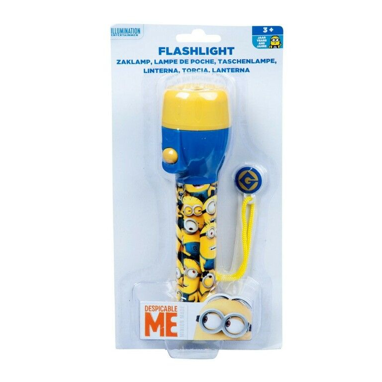 Take the Minions on an adventure in the dark with this LED flashlight. The flashlight is made of sturdy plastic and has a Minions print all around. You can easily hang your flashlight on a handy place on the handy cord. Operates on 2 AA batteries (not included)