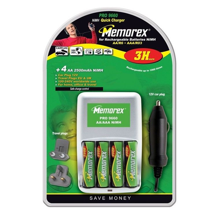 MEMOREX PRO 9660- 4x RECHARGEABLE AA BATTERIES INCLUDED CHARGERS (1 pcs.)