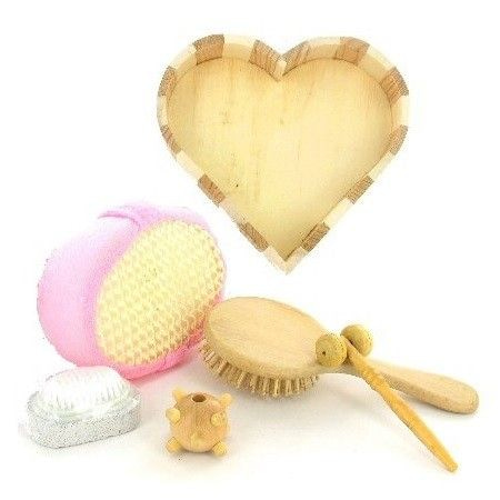 Beautiful bath set in the shape of a heart, with fun various accessories.