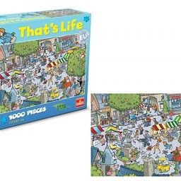 That's Life Puzzle - Village, 1000 pieces. Discover what the people in the French square experience! Goliath's life puzzles show the best chaotic images in the middle of life.