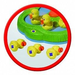 Each player first chooses his own symbol, which is stuck on the bottom of the ducks. Then press the orange button in the center of the pond. The ducklings begin to cheat and swim around. In turn, players take a duck and look at the bottom of the symbol. With the correct symbol, the player may hold the duck, otherwise it will return to the pond. The game has ended when one of the players has fished the three ducks with his or her symbol from the pond.