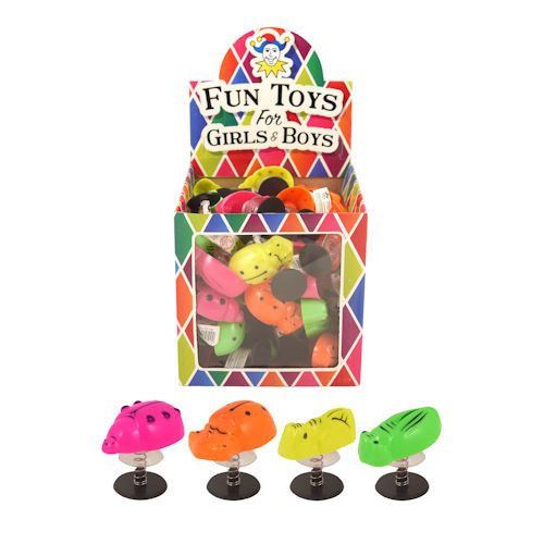Very nice these up jumping insects. Press the insect down and wait ... then the insect jumps up. Is in Mix colors insects delivered in a beautiful Display.
