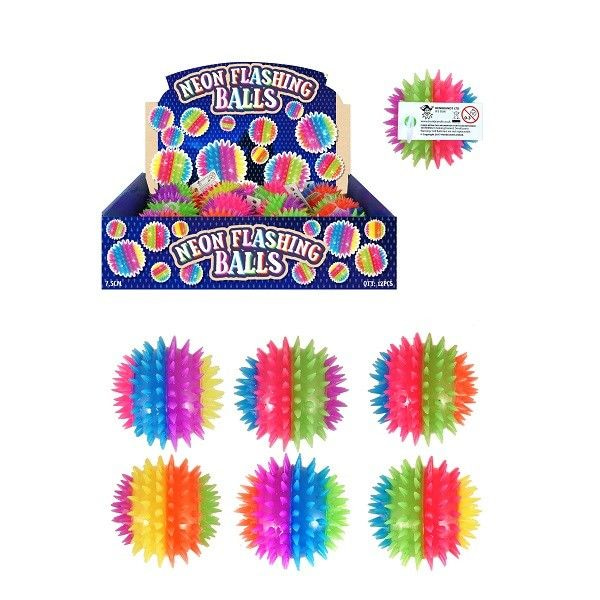 BIG NEON SPIKEY LUMINOUS BALL BALLS, 7.5 Cm. IN DISPLAY (12st.)