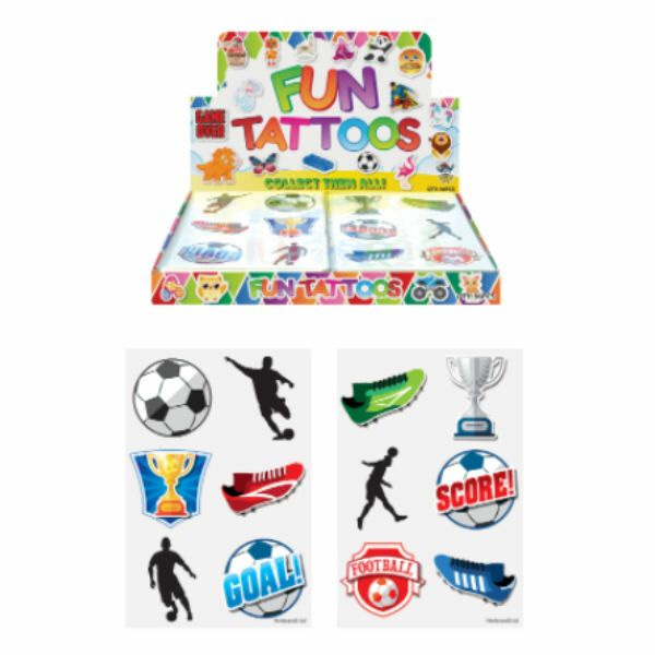 Leuke Fun Tattoo vellen, Model: Voetbal. Elk vel bevat 6 Tattoo's. Word geleverd in een Display.
