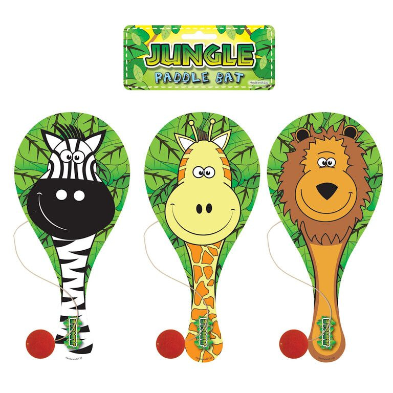 Jungle Animal Bat Ball Game. The ball is attached to an elastic band, so you can easily keep it in the air. Available in a mixed design.