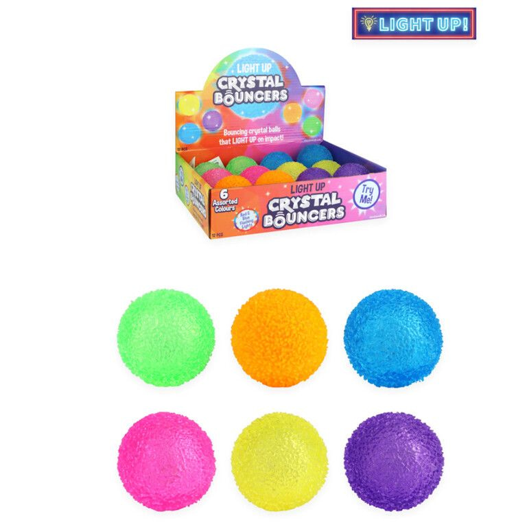 Brighten up your assortment with this Luminous Crystal Bouncy Ball. Measuring 5 cm in diameter, this ball features a unique crystal-like, glittery texture that amplifies the internal flashing light whenever it hits a surface.