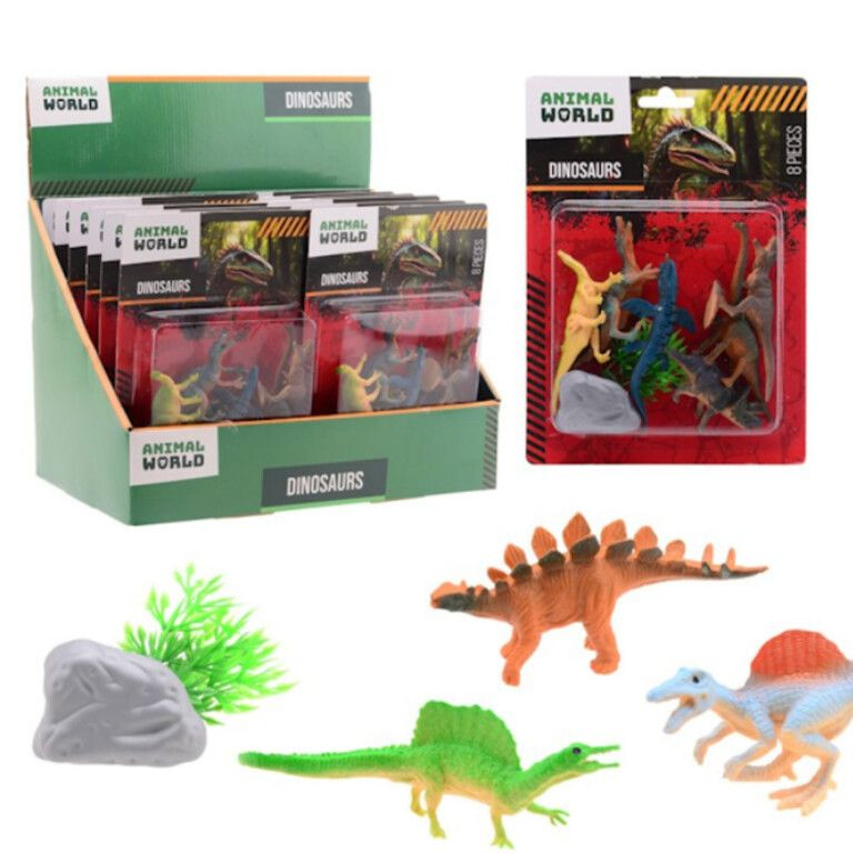 Roar into action with the Animal World Dinosaur Playset. This value-packed set features 8 distinct dinosaur figures on a colorful blister card, making it an attractive item for young explorers. A classic bestseller in the toy category.