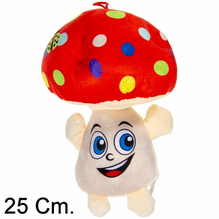Grote Pluche Paddenstoel met vrolijk gezicht. Hoogte: 25 Cm. !