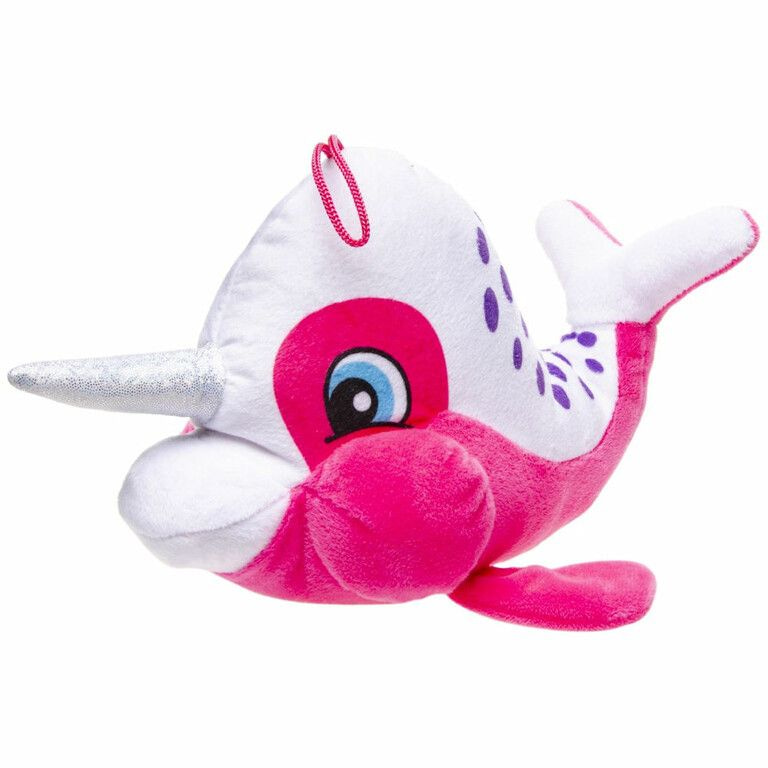 Vrolijke Pluche Narwal Vis met Hoorn. Lengte: 23 Cm.!