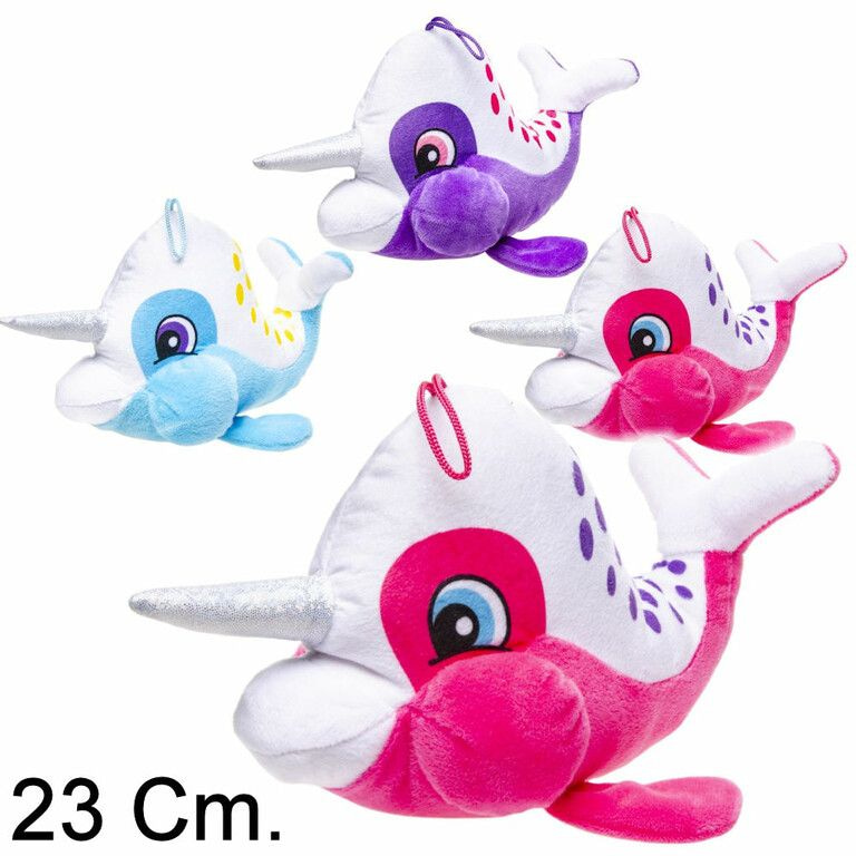 PLUCHE NARWAL VIS MET HOORN - 23 CM - MIX KLEUREN (12st.)
