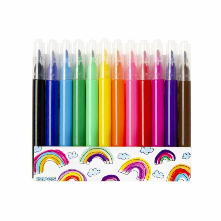 12-Delig pak met Mini Viltstiften. Afmetingen van 1 pak = 10 x 9 x 0.5 Cm.