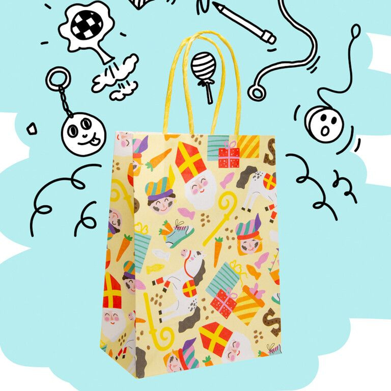 Paper Gift Bag / Treat Bags. Model: Sinterklaas. Bag Dimensions (Without Handles) 16 x 9 x 22 Cm.