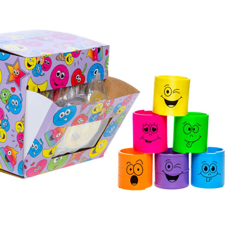 Bring a smile to your customers' faces with these cheerful Smiley Spiral Springs. Packaged in a convenient, ready-to-sell counter display of 60 pieces, these colorful mini slinkys are the ultimate impulse buy for your checkout area.