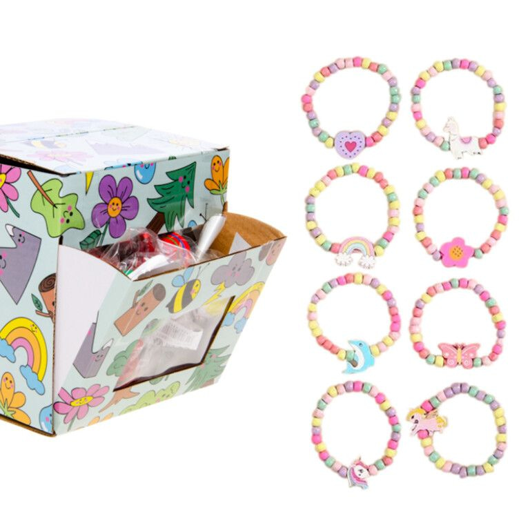 Instantly add a splash of color to your counter and boost impulse buys with these wooden elastic girls bracelets. This fast-moving item comes in a convenient 36-piece display box, perfectly designed for retail environments looking for quick turnover and great margins.