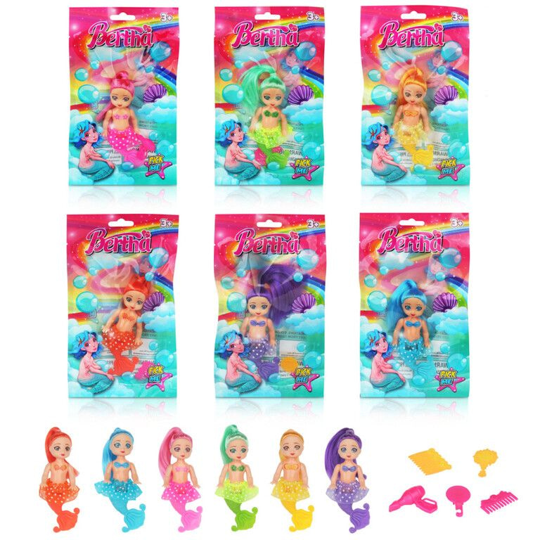 Expand your toy inventory with these enchanting Mermaid dolls. Beautifully presented in a transparent giftbag, they are retail-ready and make the perfect party favors, arcade prizes, or stocking stuffers.