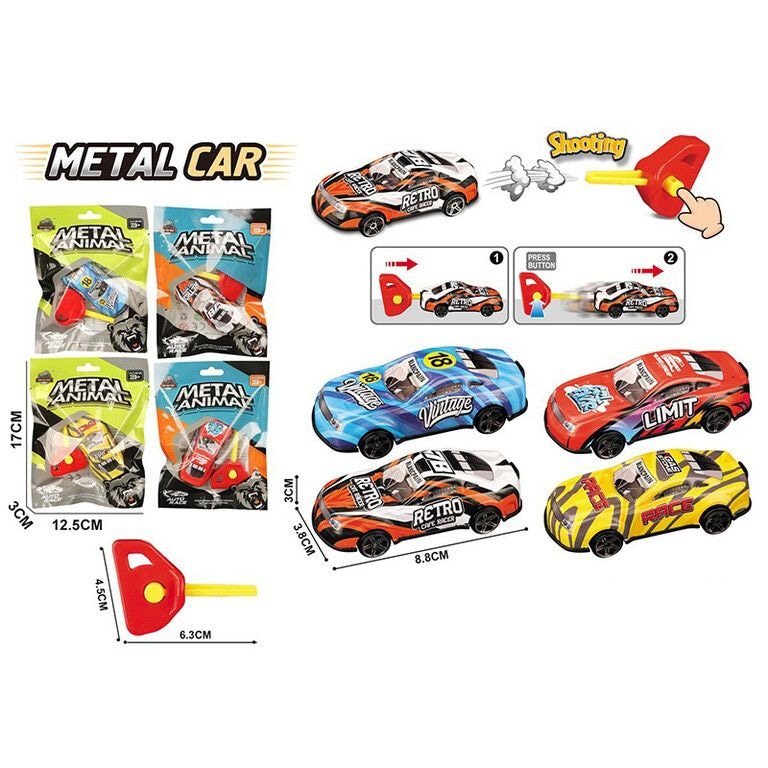 Looking for a guaranteed fast-mover for your store? These metal key-launcher toy cars offer instant action and endless fun. Each sturdy metal car comes individually packed in an attractive gift bag and is delivered in a versatile mix of colors. The mechanism is simple yet highly exciting: insert the key into the back of the car, press the button, and watch the car shoot forward at top speed! Perfect as an impulse buy, party favor, or a fun small gift item.