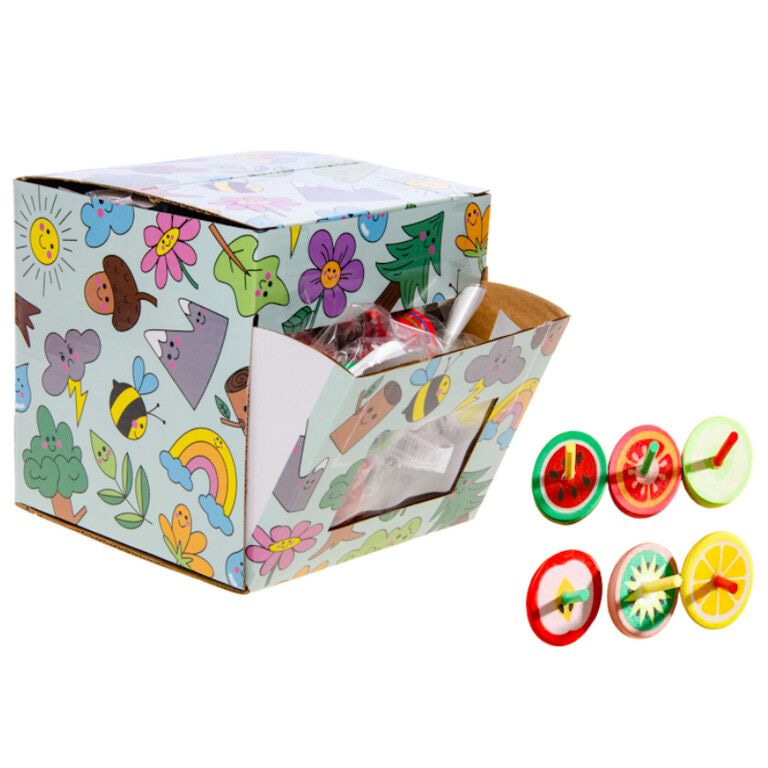 Add a cheerful and nostalgic touch to your inventory with these beautiful wooden spinning tops with fruit prints. These classic toys remain as popular as ever and are perfect as small gifts, party favors, or impulse-buy counter items.