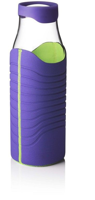 The designer Jakob Wagner has reinterpreted the standard bottle shape. to a simple water carafe with a two-tone neoprene sheath, that it allows to change the color of the carafe. The discreet cap automatically opens when you want to pour water, and ensures that ice remains in the decanter.