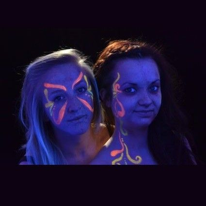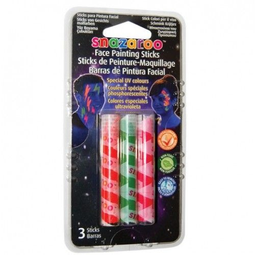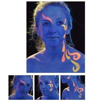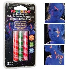3 bars face paint with special UV colors. Make nice drawings on your body that give brilliant fluorescent light in the dark.