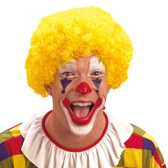Funny afro clown wig in the color yellow. Cute as a dress accessory during carnival, Halloween, theme parties and more.