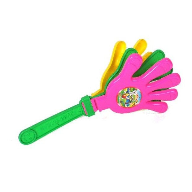 Brightly colored hand slap of 28.5 centimeters long. Delicious noise with the children. Ideal for parties and carnival.