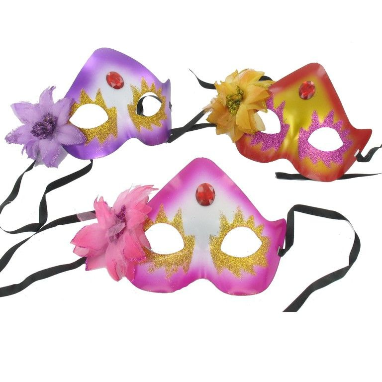 A face mask in Venetian style. This mask covers part of the face and has a beautiful flower on the side. Ideal for carnival and other celebrations and events.