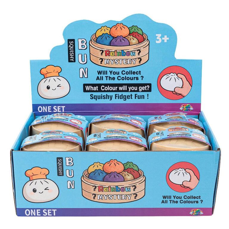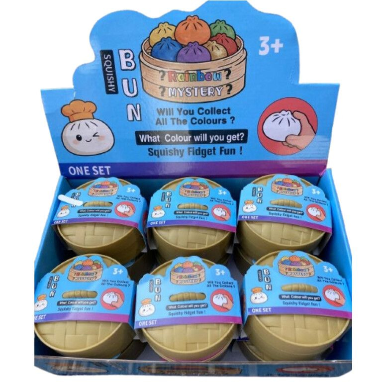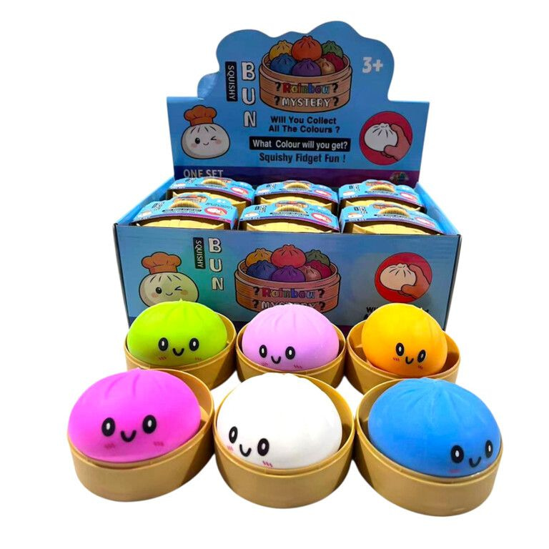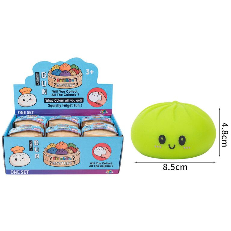 This set contains no less than 12 pieces in a convenient display, perfect for retail, gifts, or as giveaways. The squishy buns feel wonderfully soft and slowly return to their original shape. This makes them not only fun toys but also ideal as a tool against stress and tension.