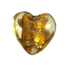 S_39153 - GLASS BEADS GOLD HEART 12 MM. (16st.)