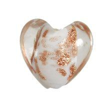 S_39087 - GLASS BEADS HEART WHITE / BROWN 17 MM. (18st.)