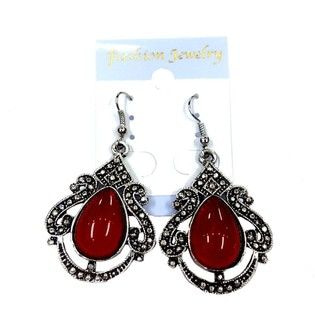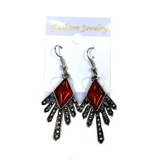 S_600781R - EARRINGS RED WITH BRUSH SHORT STRASS (1st)