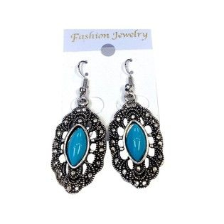 S_600803C - MODERN EARRINGS OVAL / FLOWER TURQUOISE (1st)