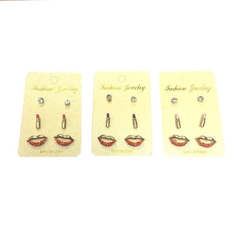 S_812166 - 3-PIECE SET EARRINGS ON DISPLAY CARD - MODEL LIPSTICK (1st)