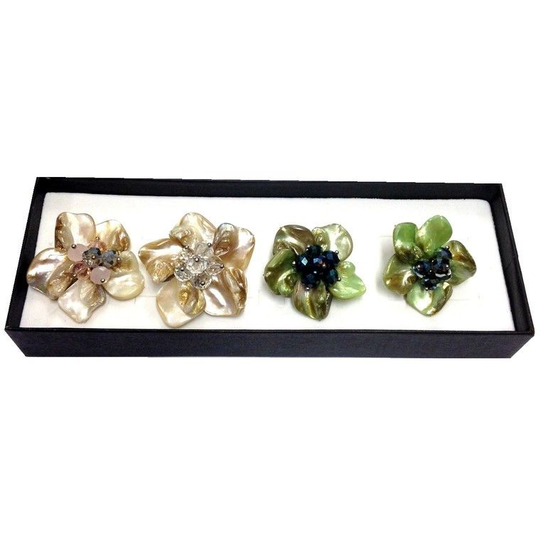 S_700231A - RINGS FLOWERS INCL BOX GREEN / CREAM (4pc)