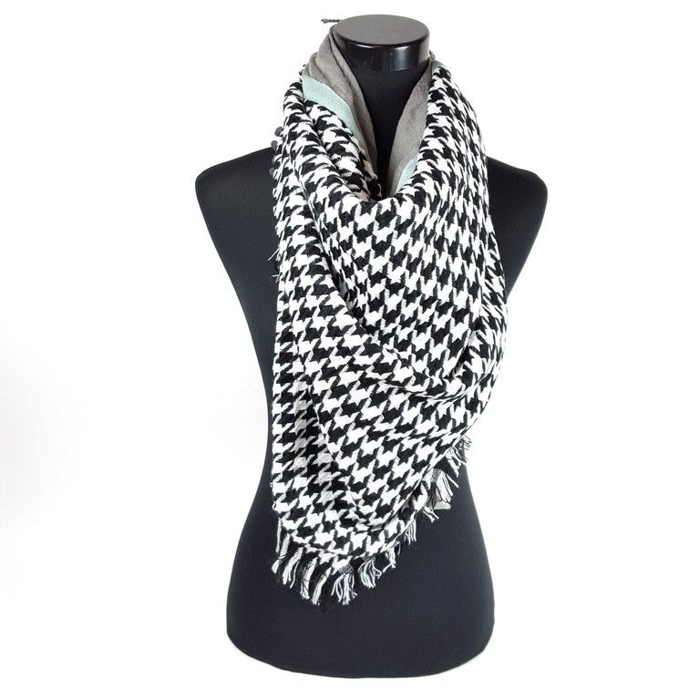 S_2587003 - BEAUTIFUL SQUARE / TRIANGLE SCARF gray MODEL PANTHER PRINT (1st)