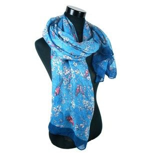 S_2601206 - LUXURY FLOWERS SCARF WITH FRILLS - DARK BLUE (1st)